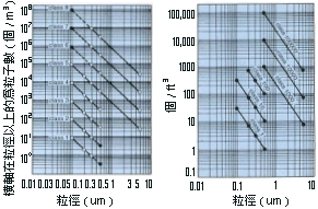 ■ 横轴上代表尘粒大小的每立方尺含有尘粒数目之上限。